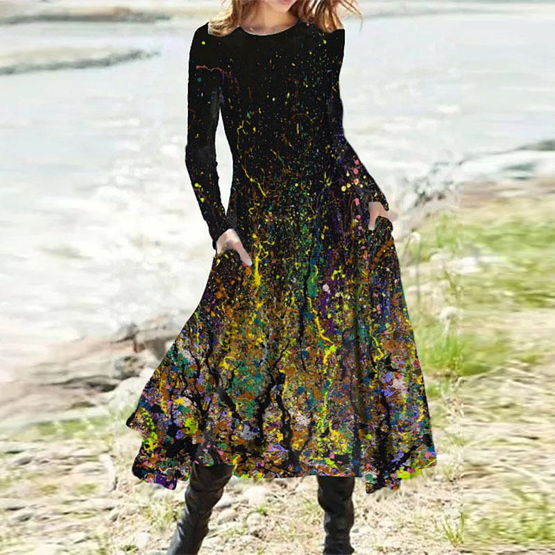 Women's Midi Dress Casual Dress Winter Dress Swing Dress Vacation Fashion Basic Formal Vacation Party Regular Fit Tie Dye Color Gradient Long Sleeve Crew Neck Yellow Blue Camel Purple