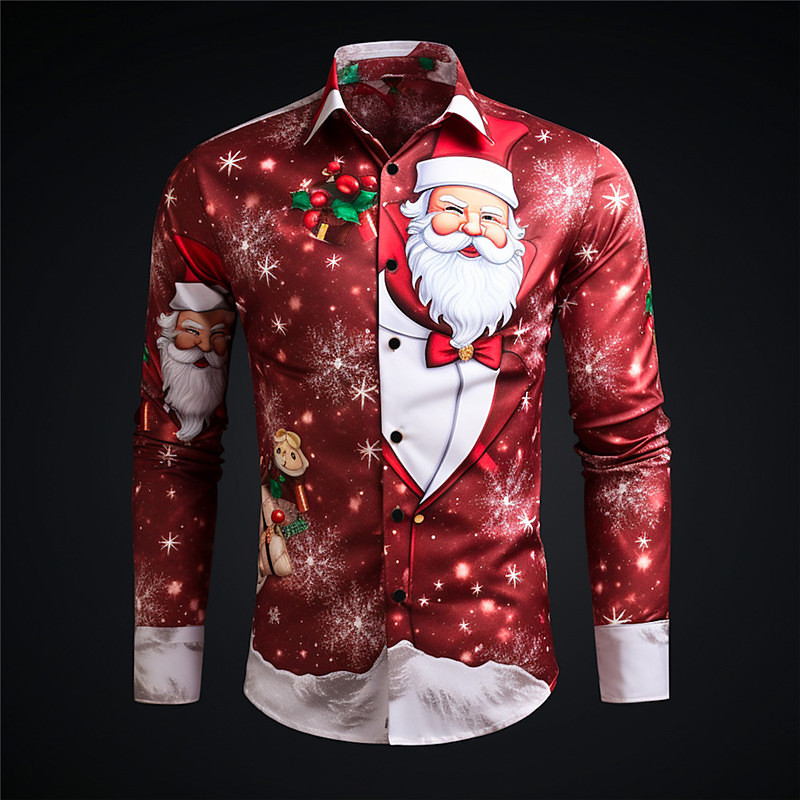 Christmas Men's Santa Claus Printed Shirts Santa Claus Casual Daily Wear Going out Fall Winter Turndown Long Sleeve White, Army Green, Red S, M, L 4-Way Stretch Fabric Shirt