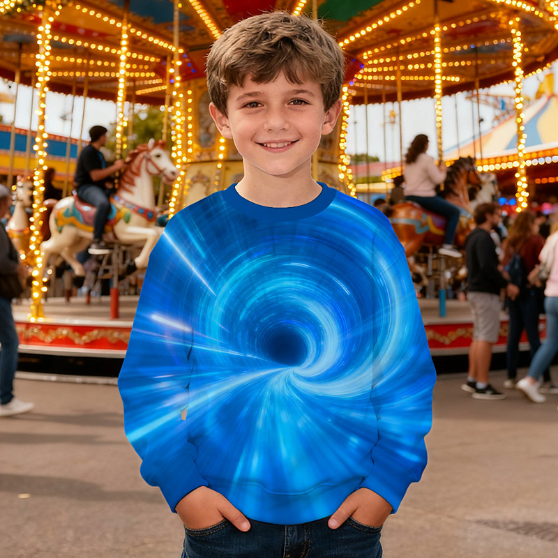 Boys' 3D Graphic Optical Illusion Sweatshirt Long Sleeve Spring Fall Fashion Basic Kids 4-12 Years Crew Neck Outdoor Casual Daily Regular Fit
