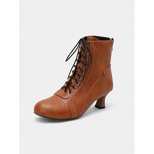 stivaletti alla caviglia stringati in similpelle marrone da donna in stile edoardiano, stivaletti vintage anni '50 con tacco medio per costumi, teatro e abbigliamento retrò quotidiano