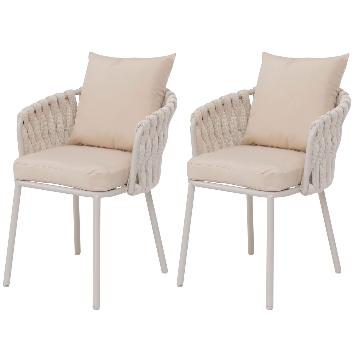Mendler 2er-Set Aluminium-Gartenstuhl HWC-P89, Gartensessel Outdoor Stuhl, Stoff/Textil (180 g/m²) Seilgeflecht Rope ~ creme