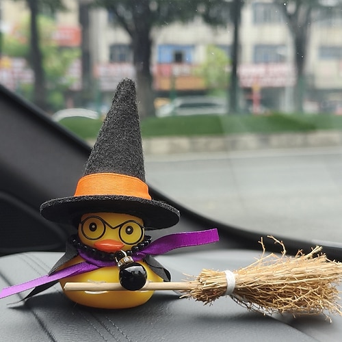 2 pezzi cappello da mago anatra ornamento cruscotto auto con manico di scopa collana magica occhiali divertimento regalo a tema spettrale per la decorazione dell'auto, perfetto per i fan accessorio