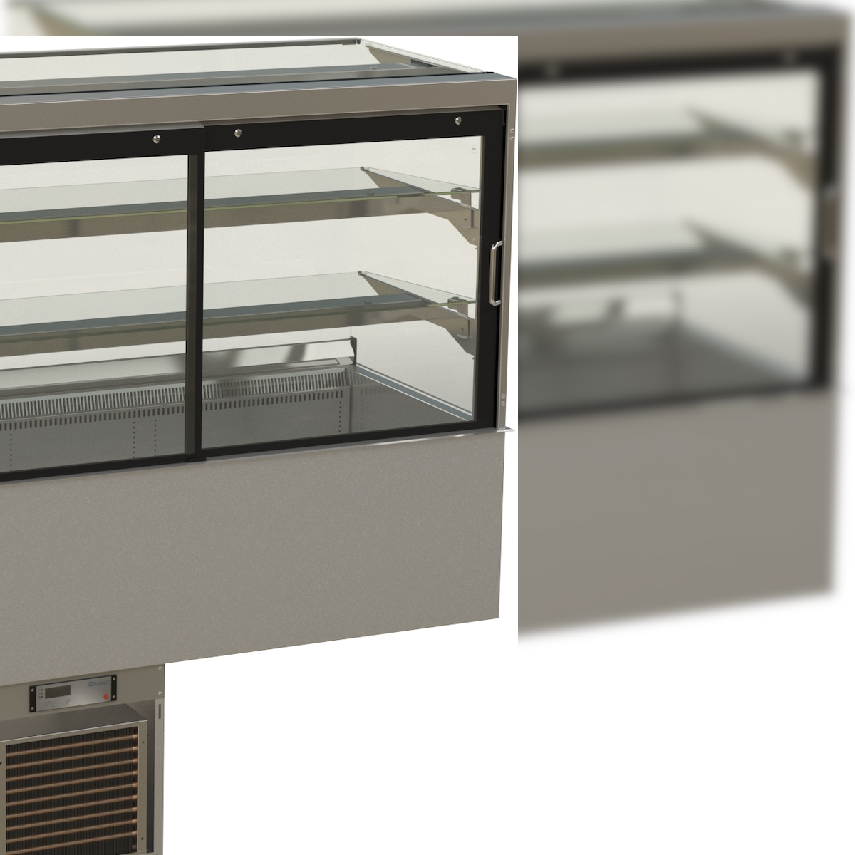 HAGOLA Showcase "Göteborg" eckig, für 4x GN 1/1, 3 Auslagen 200mm Tiefe, 1410x710/400+410x710mm (BxHxT) steckerfertig mit Transporthalterung