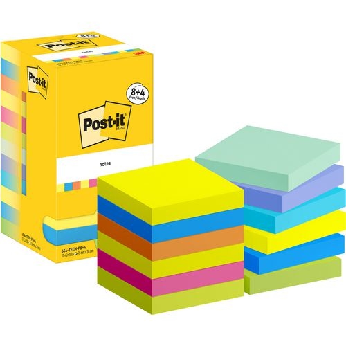 Post-it Energetic Haftnotizen Quadratisch 76 x 76 mm Blanko Farbig Sortiert 654-MX-P8+4 100 Vorteilspack 8 + 4 Gratis