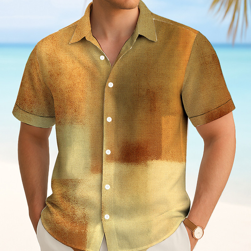 Men's Color Block Gradient Shirt Summer Shirt Button Up Shirt Short Sleeve Fashion Casual Outdoor Vacation Dailywear Summer Spring Turndown 3D Print Collared Shirts Blue Orange Green