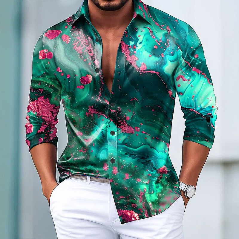 Men's Marble Abstract Art Color-blocking Shirt Satin Shirt Dress Shirt Long Sleeve Fashion Casual Vacation Dailywear Summer Spring Fall Turndown 3D Print Button Up Shirts Blue Purple Green Dark Blue