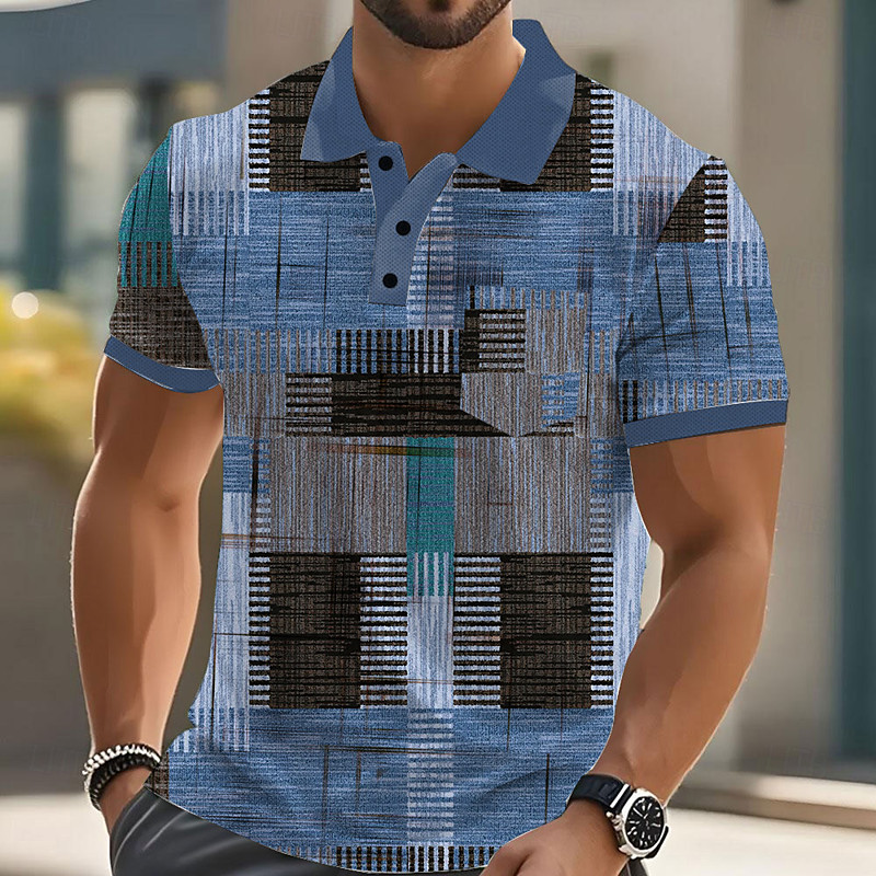 Men's Geometric Polo Short Sleeve Polo Shirts Collared Shirts Business Casual School Outdoor Athleisure Daily Wear 3D Print Summer Lake blue Sky Blue Purple