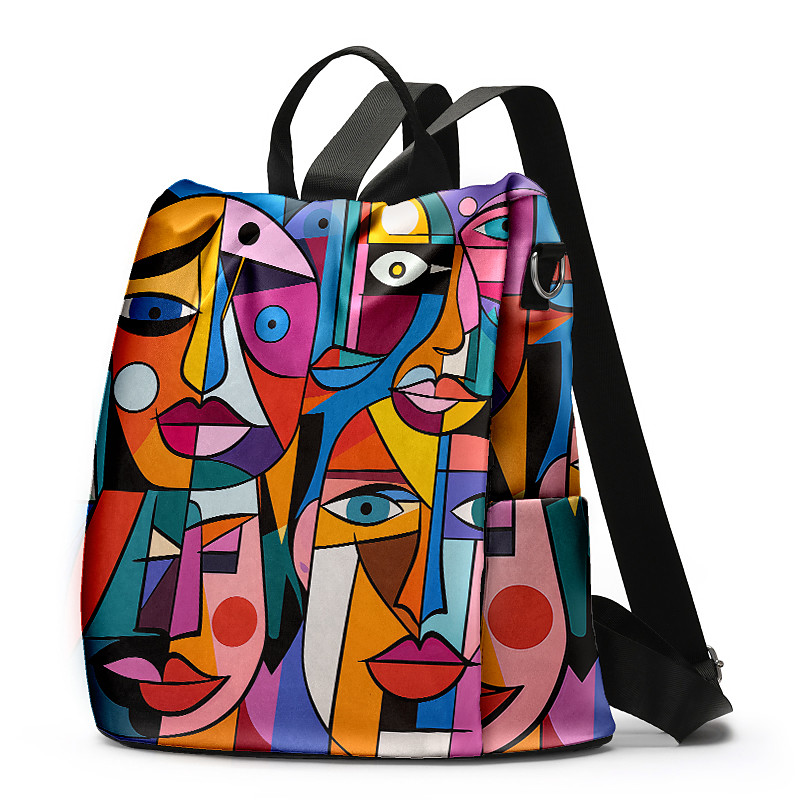 Large Capacity Colorful Abstract Art Print Multi-Carry Backpack - Durable and Spacious School Bag with Adjustable Straps, Available in Two Patterns