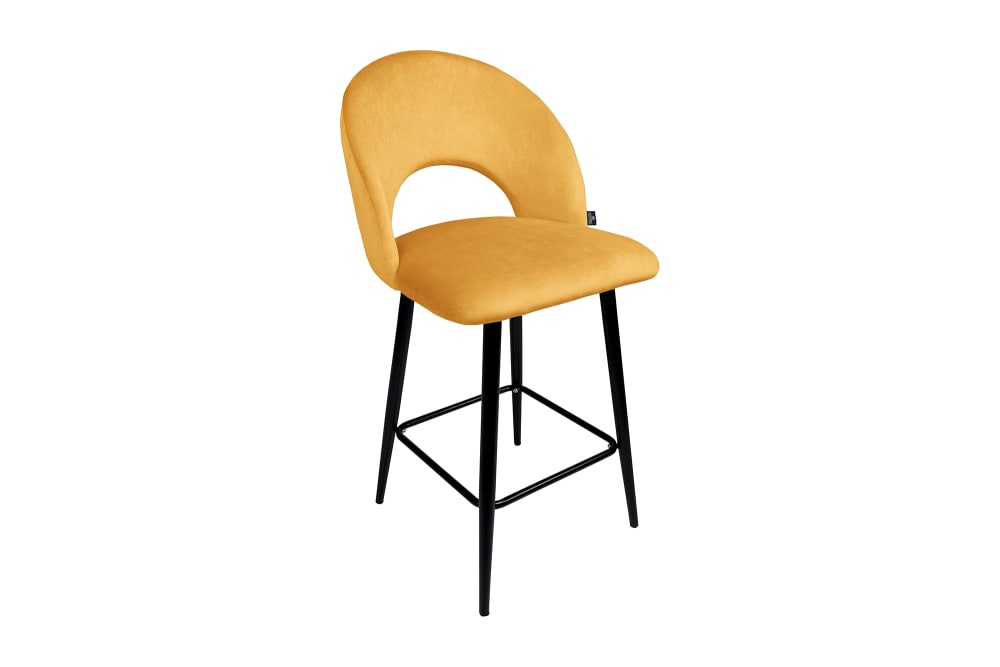 Sgabello cucina imbottito, sgabello alto in velluto giallo senape