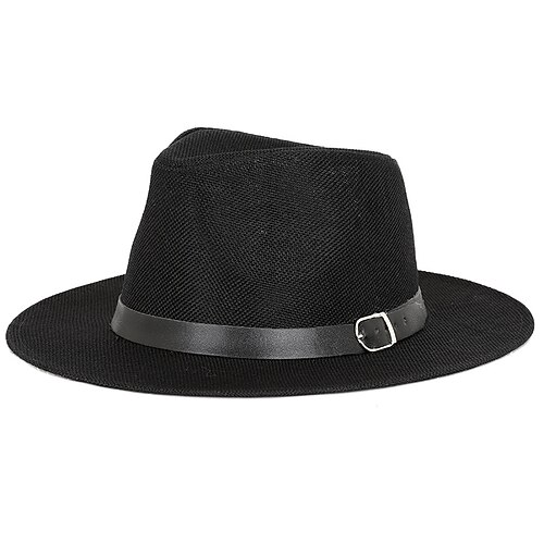 Cappello da sole da uomo in lino, Panama, a tesa piatta, stile jazz britannico, con protezione solare, da gentiluomo