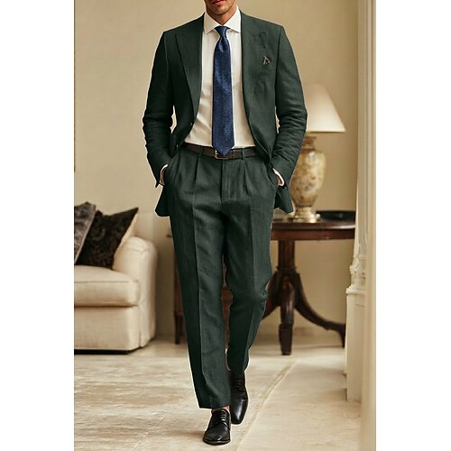 Uomo Completi in Lino Abiti da lavoro Casuale Matrimonio Bianco Rosa Primavera Estate Tuta Bavero classico Moda Quotidiano Tinta unita Vestibilità su misura 2 pezzi Monopetto Due Bottoni