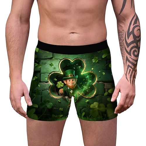 San Patrizio 2026 Leprechaun Trifoglio Irlandese fortunato Carnevale Boxer aderenti Biancheria intima Cosplay Adulti Per uomo Giorno di San Patrizio Casuale Feste Costume di Carnevale facile Vestirsi