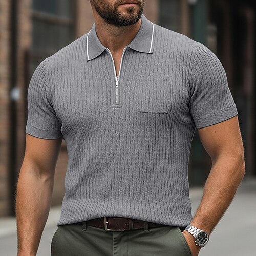 Per uomo Testurizzato Maglia da golf Casuale Lavoro Bavero Zip a un quarto Manica Corta Essenziale Moderno Blocco di colori Cerniera Tasca Estate Primavera Primavera Estate Vestibilità regolare