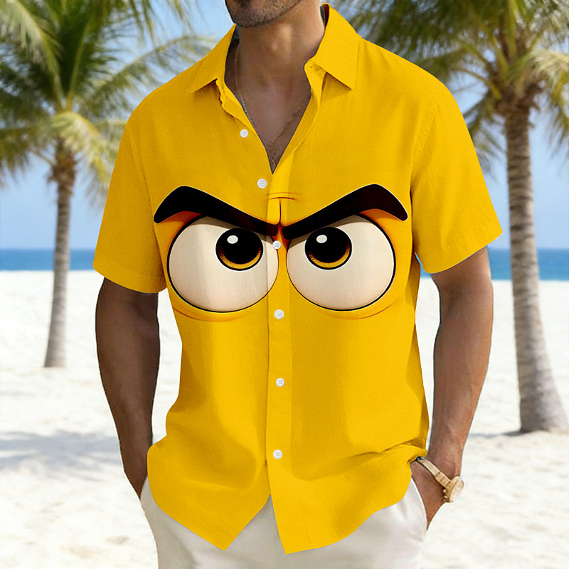 Men's Optical Illusion 3D Cartoon Big Eyes Shirt Summer Shirt Button Up Shirt Short Sleeve Fashion Casual Outdoor Vacation Dailywear Summer Turndown 3D Print Linen Like Shirt Blue Yellow Purple