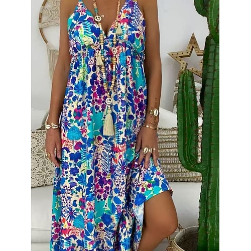 Per donna Abito Midi Abito Floreale Abito Estivo Abito Sottoveste Abito Stampato Moda Moderno All'aperto Vacanza Uscire Vestibilità comoda Floreale Senza Maniche Spalline Blu Giallo Rosso Arancione
