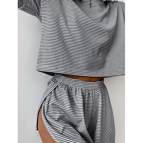 Per donna Set Pigiama Casual Comfort A righe Elastico in vita Shorts Quotidiano Casa Manica Corta Girocollo Nero Rosa Verde Grigio Estate Primavera Vestibilità comoda