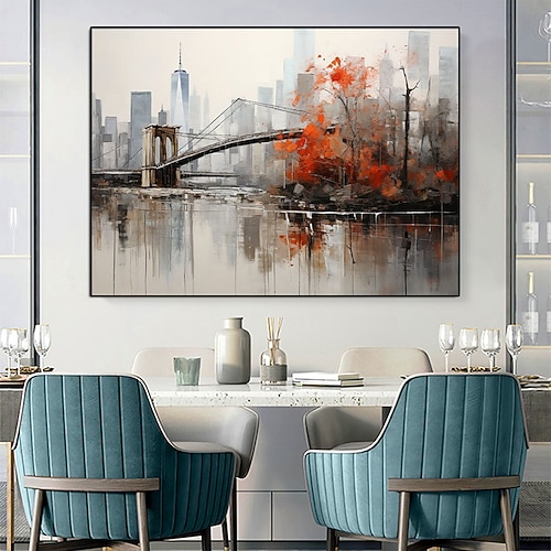 grande fatto a mano ponte di brooklyn tela pittura dipinta a mano arte della parete astratta paesaggio urbano di new york pittura a olio su tela moderna manhattan pittura per soggiorno camera da letto