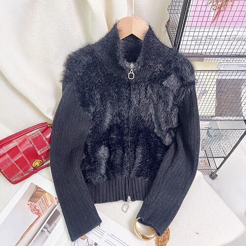 Per donna Felpa Cardigan Streetwear Casual Tinta unica Collo alla coreana Lavorato a maglia Manica Lunga Top Regolari Maglia Quotidiano Ferie Uscire Nero Bianco Autunno Inverno