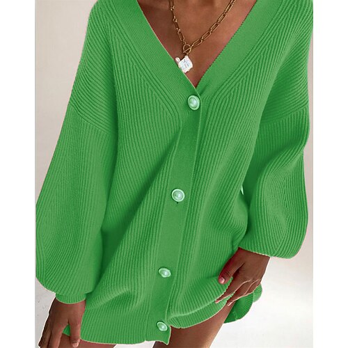 Per donna Cardigan Casual Morbido Tinta unica Treccia Scollo a V Bottoni Lavorato a maglia Manica Lunga Top Regolari Maglia All'aperto Ferie Weekend Rosa Verde militare Autunno