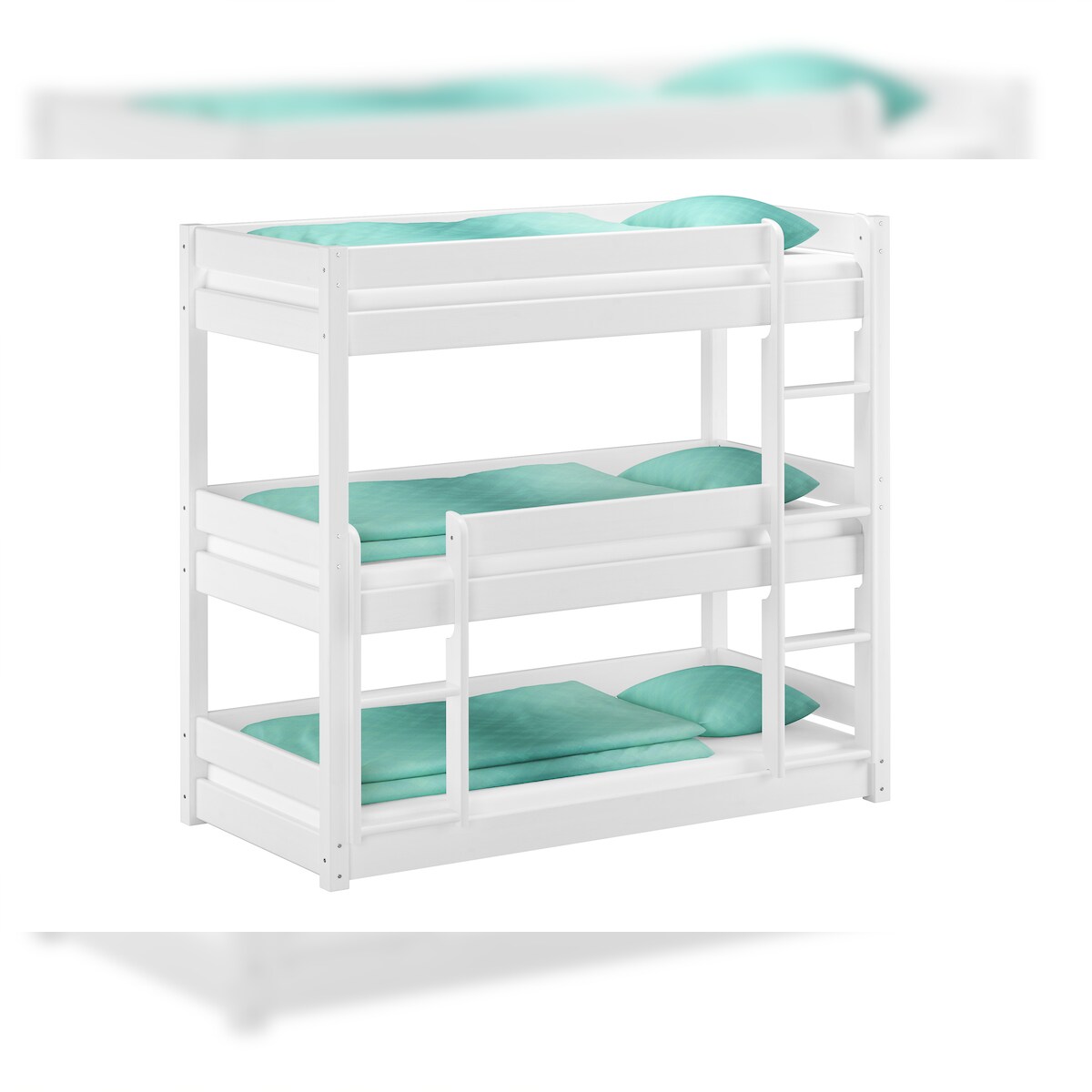 Erst-Holz Weißes Dreier-Etagenbett für Erwachsene Stockbett für drei Personen 90x200 Kiefer weiß V-60.03-09W ohne Zubehör
