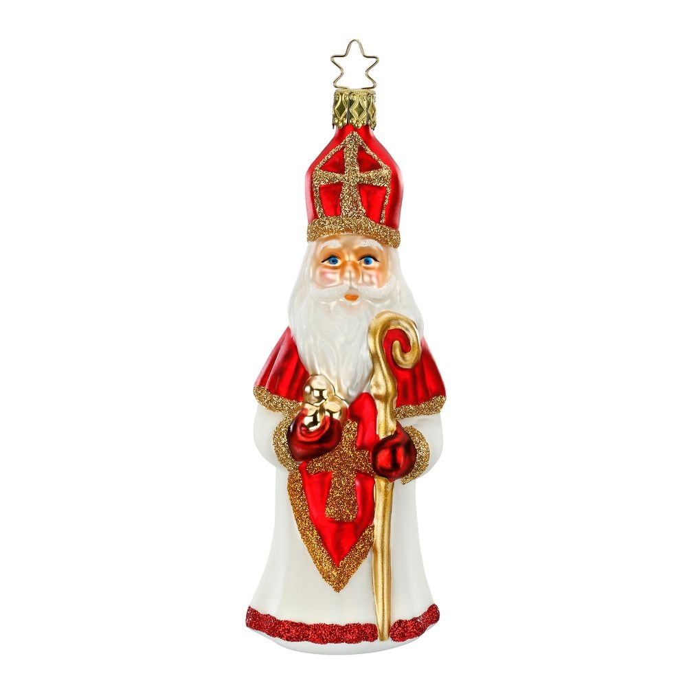 INGE-Glas Manufaktur Christbaumschmuck Nikolaus mit drei goldenen Kugeln 15cm Glas Figur Mundgeblasen & Handbemalt Weihnachtsbaum Anhänger Weihnachten Christbaumanhänger