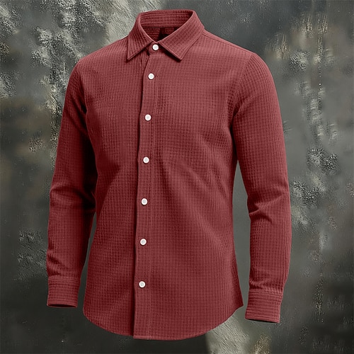 Per uomo Camicia Camicia a nido d'ape Camicia casual Camicia vintage Camicia con Bottoni Nero Bianco Rosso Blu marino Azzurro cielo Manica Lunga Semplice Bavero Casuale Quotidiano Abbigliamento Moda