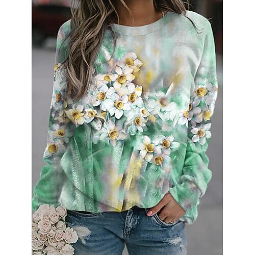 Per donna Felpa Pullover Floreale Grafico Casual Manica Lunga Girocollo Top Regolari Casuale Streetwear Ferie Stampato Blu Rosa Rosa scuro Azzurro cielo Viola Primavera Inverno