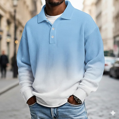 Per uomo Sfumatura Magliette Polo a Nido d'Ape Manica Lunga Magliette polo Bavero Casual Scuola Athleisure Abbigliamento quotidiano Stampa 3D Primavera Autunno Inverno Nero Blu marino Azzurro cielo