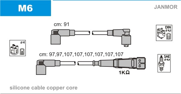 Sytytysjohtosarja Janmor M6 - mercedes-benz s-klass [w126], s-klass coupé [c126], sl [r107] - OE 116 150 12 19, 116 150 13 19, 1161506018