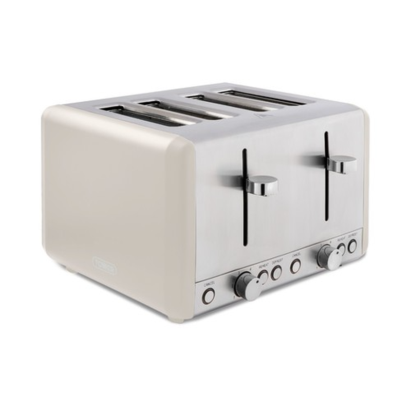 TOWER Cavaletto 4-Slice Toaster, Retro, 1800W, Cord Storage, Latte and Chrome, Beige - T20051MSH