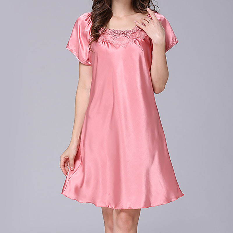 Women's Loungewear Nightgown Fashion Casual Soft Pure Color Patchwork Dress Home Vacation Short Sleeve Crew Neck Lotus Pink Pink Red Camel Summer Spring Fall Regular Fit