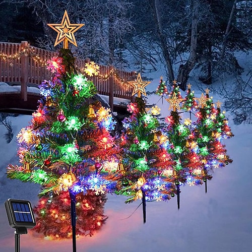 albero di Natale solare 1 confezione, decorazioni luminose, decorazioni natalizie impermeabili per esterni, luci per albero per giardino/patio/prato/cortile, ornamento