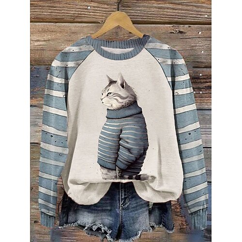 Per donna Felpa Pullover Grafico Animale Moda Casual Manica Lunga Girocollo Top Regolari Streetwear Abbigliamento Quotidiano Stampato Blu Verde Beige Autunno Inverno