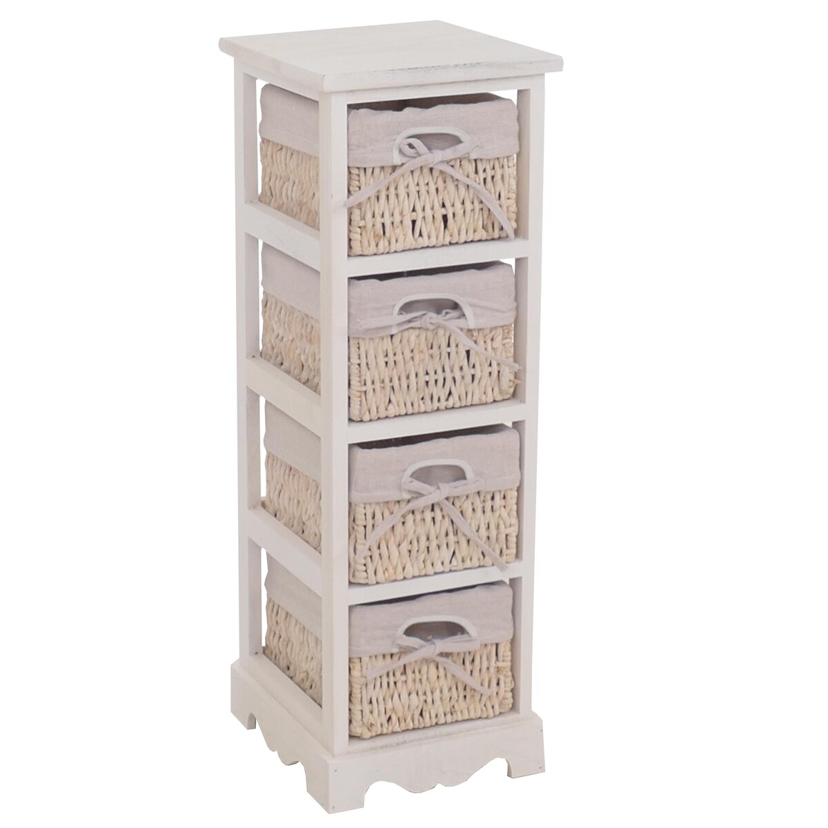 Mendler Regal Kommode mit 4 Korbschubladen 74x25x28cm, Shabby-Look, Vintage ~ weiß