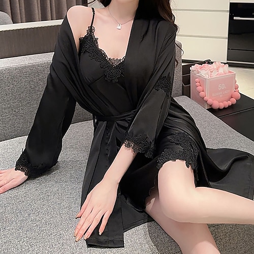 Per donna Abbigliamento da Casa Camicia da Notte Moda Sexy Casual Colore Puro Patchwork Vestiti Casa Vacanza Manica Lunga Scollo a V Nero Rosa Vino Oro Blu scuro Estate Primavera Autunno Vestibilit