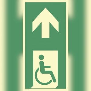 Aufkleber Notausgang f. gehbeeintr. Pers. rechts Pfeil oben,Folie,nachl.,160-mcd,148x297mm