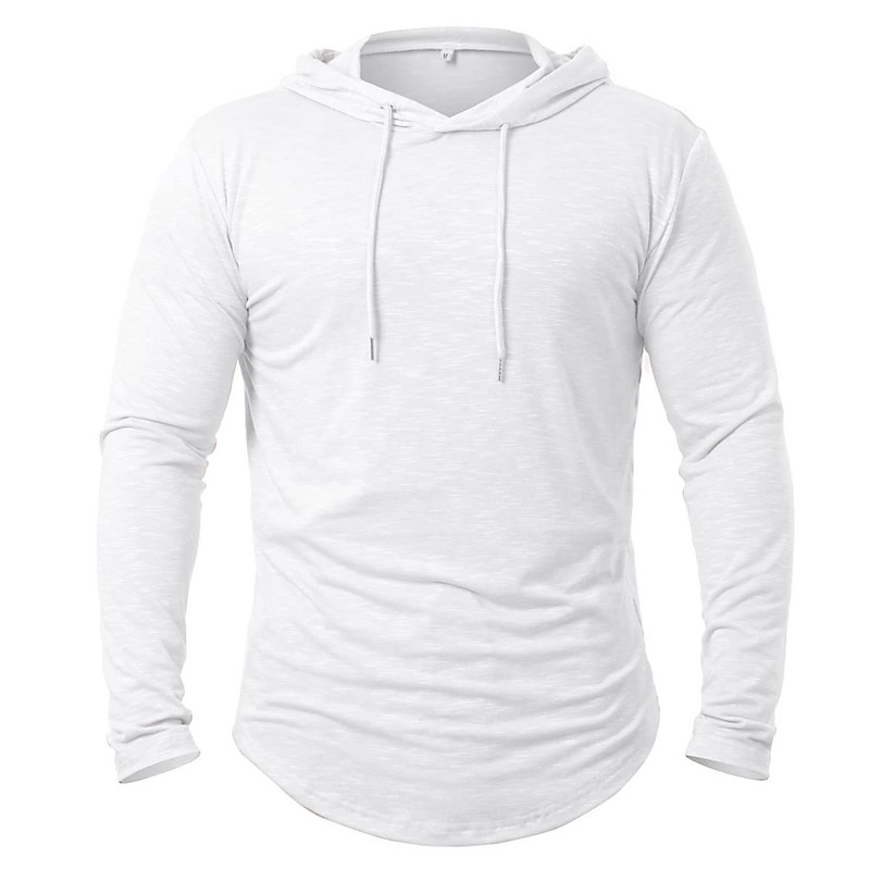 Men's T Shirt Long Sleeve Crew Neck Spring Fall Solid Color Traditional / Vintage Hooded Outdoor Activewear Light Blue Dark Brown White Top Tee for Men