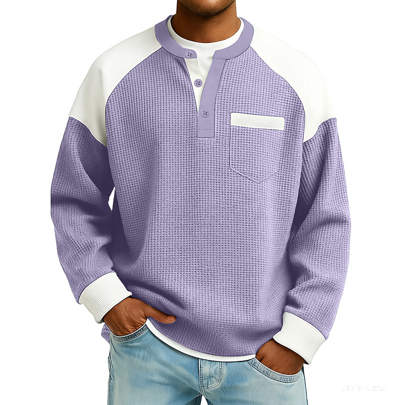 Men's Waffle T-shirt T Shirt Long Sleeve Henley Fall Fall Winter All Seasons Solid Color Textured Traditional / Vintage Casual Patchwork Casual Home Outdoor Light Blue Black Light Green Top Tee for