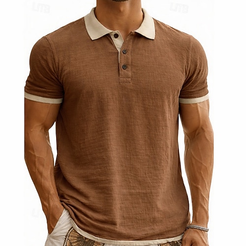 Per uomo Camicia di lino Polo Casuale Affari Collo ripiegato Manica Corta Moda Essenziale Tinta unica Bottoni Lavato Primavera Estate Blu Marrone scuro Nero Rosa Viola Marrone Camicia di lino