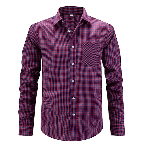 Per uomo Camicia Camicia elegante Camicia con Bottoni Plaid Matrimonio Quotidiano Rosso Blu Manica Lunga Collo ripiegato Primavera Autunno Abbigliamento Tasca Frontale