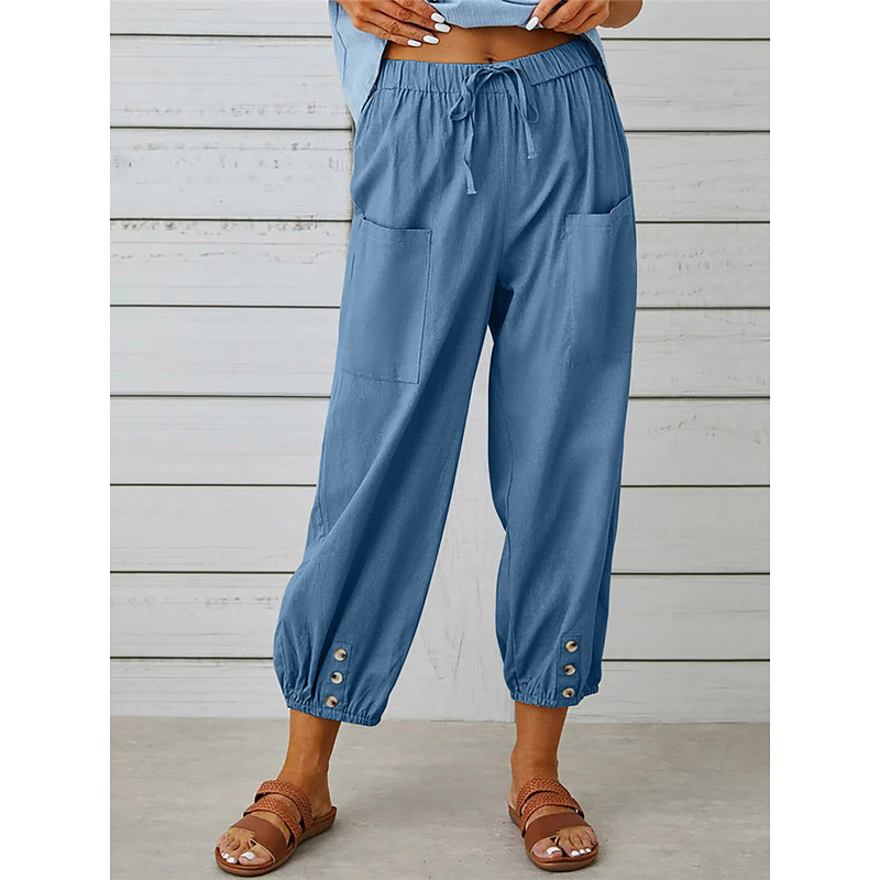 Women's Pants Fashion Basic Comfort Pure Color Pocket Elastic Waist Cotton Linen Pants Home Daily Long Pant Black White Pink Khaki Summer