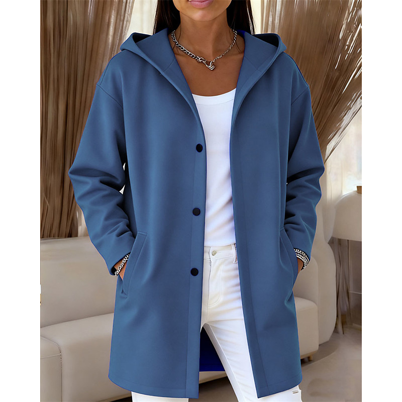 Women's Winter Coat Coat Windproof Warm Patchwork Pocket Buttons Elegant Fashion Cute Daily Solid Color Outdoor Home Work Casual Single Breasted Regular Hooded Regular Fit Long Sleeve Outerwear Blue