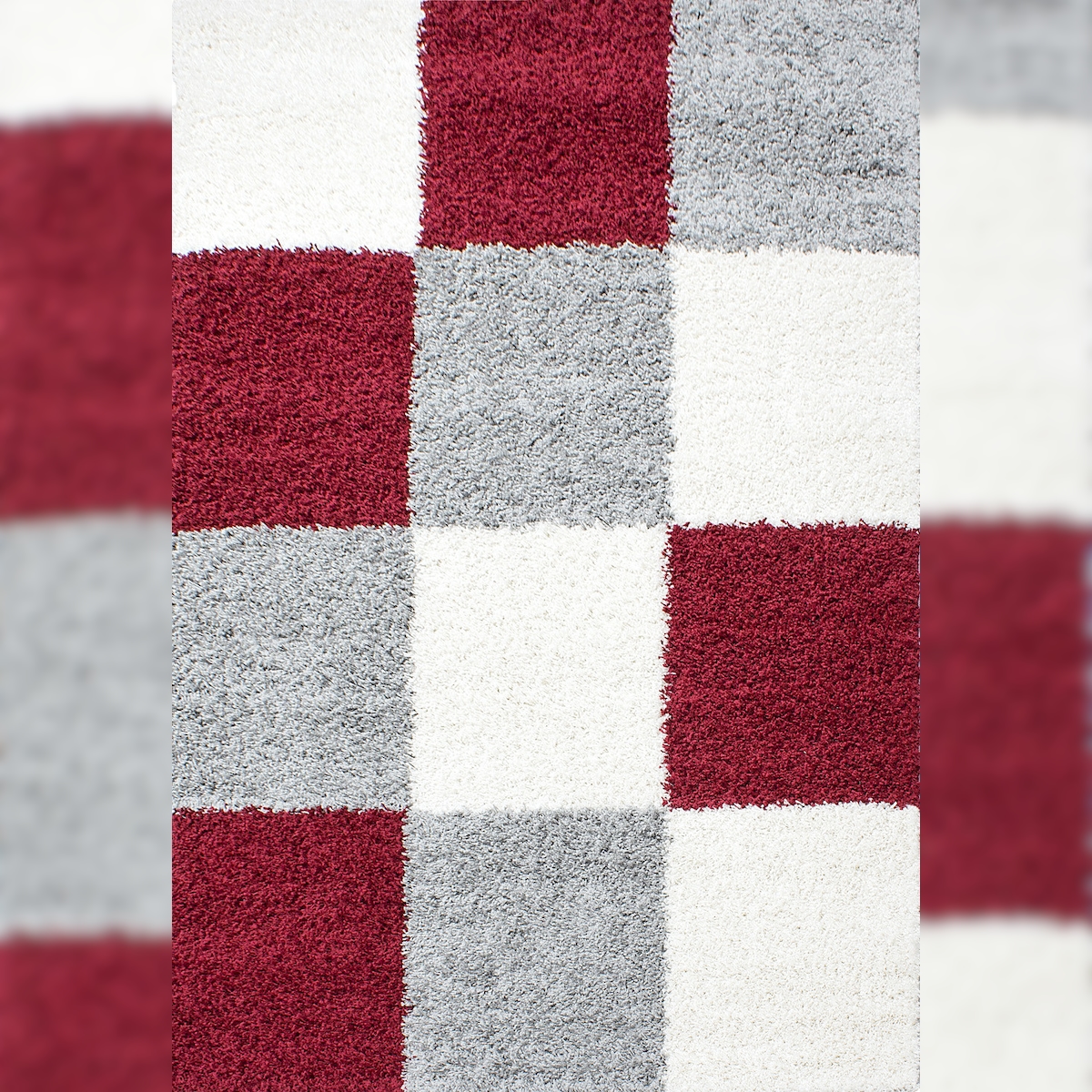 Hochflorteppich Shaggy Kariert Weich Flauschig Waschbar Strapazierfähig Schlafzimmer Esszimmer Rot 60x110 cm – RHEIN von Kadima Design