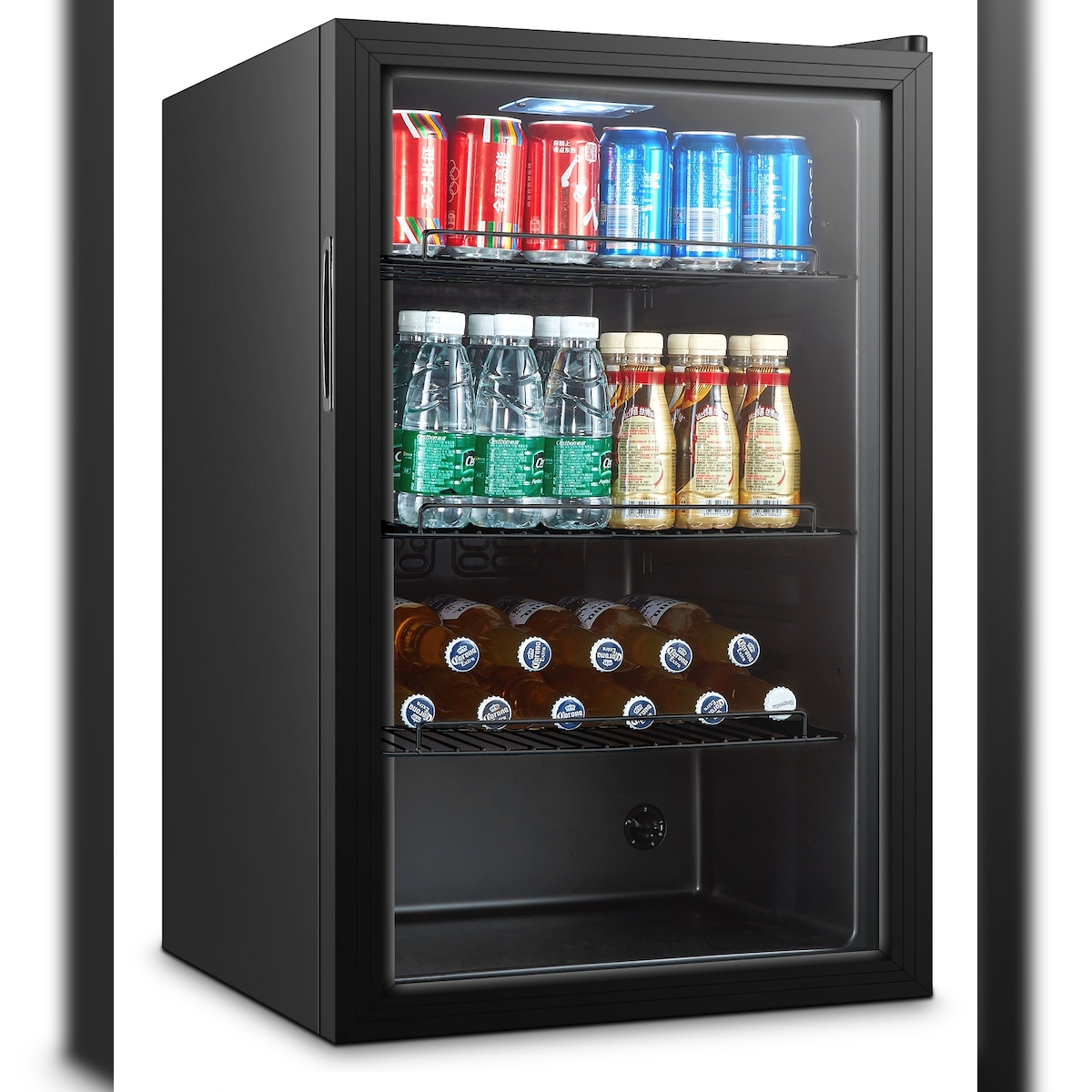 Barkühlschrank GAUKLER für 161 Dosen (330ml) | 1x Glastür + LED | 115 Liter, HxBxT 84,7x54x53,9cm | +3/+10°C | Schwarz + CHEFGASTRO Geschirrtuch