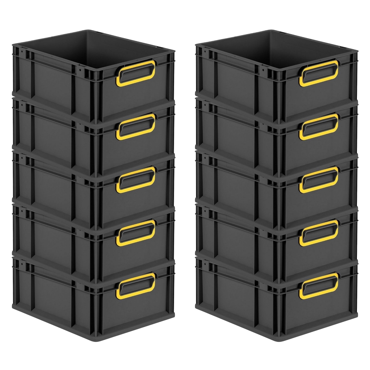 PROREGAL SuperSparSet 10x Eurobox NextGen Color, HxBxT 17x30x40cm, 16 Liter, Griffe gelb zu, Schwarz, Eurobehälter, Transportbehälter
