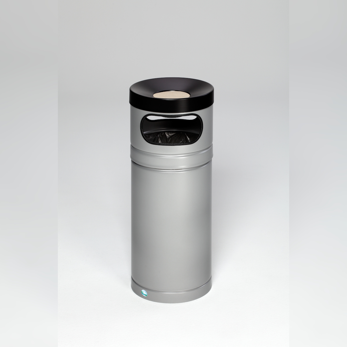 PROREGAL Robuster Kombiascher für Kunststoffsäcke | 56 Liter, HxBxT 88,5x36,5x36,5cm | Stahl | Silber | Mülleimer Aschenbecher Abfalleimer