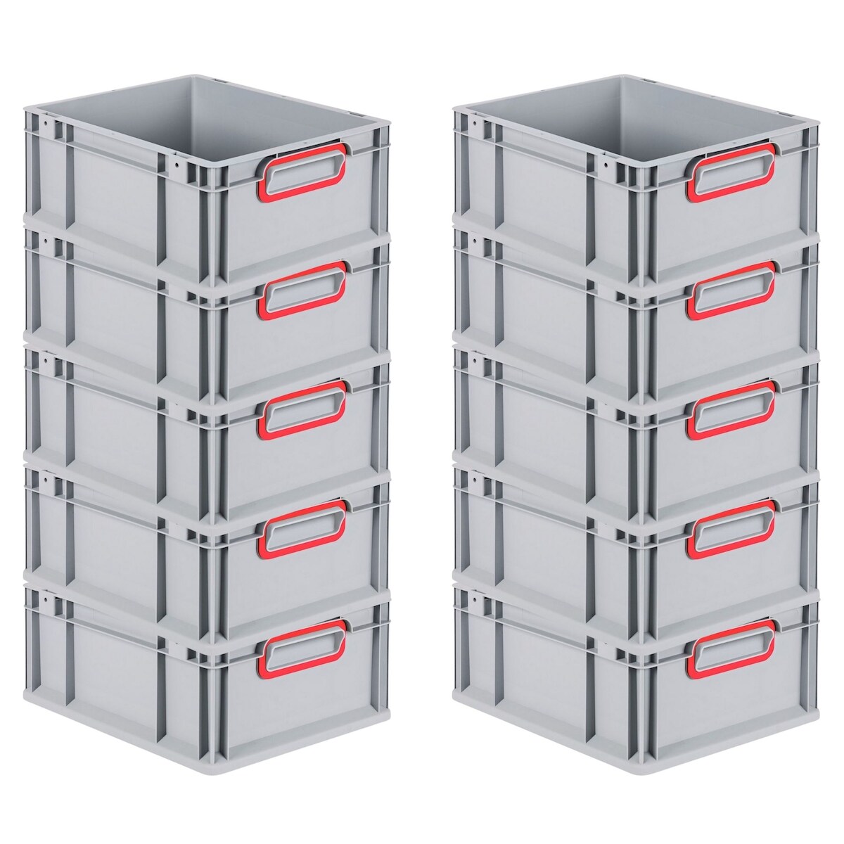 PROREGAL 10x Eurobox NextGen Color | HxBxT 17x30x40cm | 16 Liter | Griffe rot geschlossen | Glatter Boden | Eurobehälter