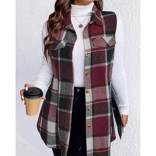 Per donna Camicie di cotone e lino Finto cotone e lino Geometrico Blocco di colori Quotidiano Casual Manica Lunga Colletto a Camicia Top Regolari Quotidiano Ferie Bottoni Stampato Blu Vino Rosso
