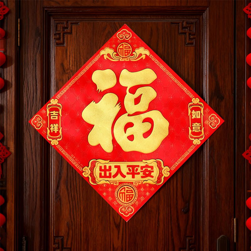 1pc 13.7in Velvet Chinese New Year Self-Adhesive Fu Ornament,2026 Spring Festival Fu Velvet Stickers, Year of The Horse Lunar New Year Decorations for Home Door Window Cabinet Ping An Ru Yi