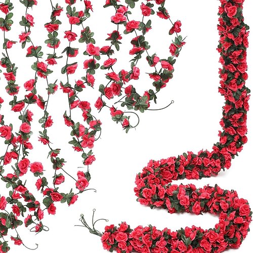 Ghirlanda di fiori artificiali da 8 x 8,2 piedi, rose rampicanti con foglie verdi, rose finte appese, per decorazioni da parete ad arco per feste in camera, casa, matrimonio, compleanno, Natale,